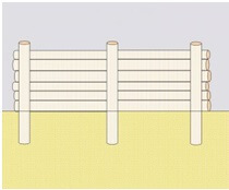 a) on plante tous les rondins verticalement, côte à côte (Figure A). Cette technique permet d’obtenir une résistance mécanique élevée, mais elle consomme plus de bois et nécessite plus de travail pour creuser la tranchée dans laquelle sont enfichés les rondins.