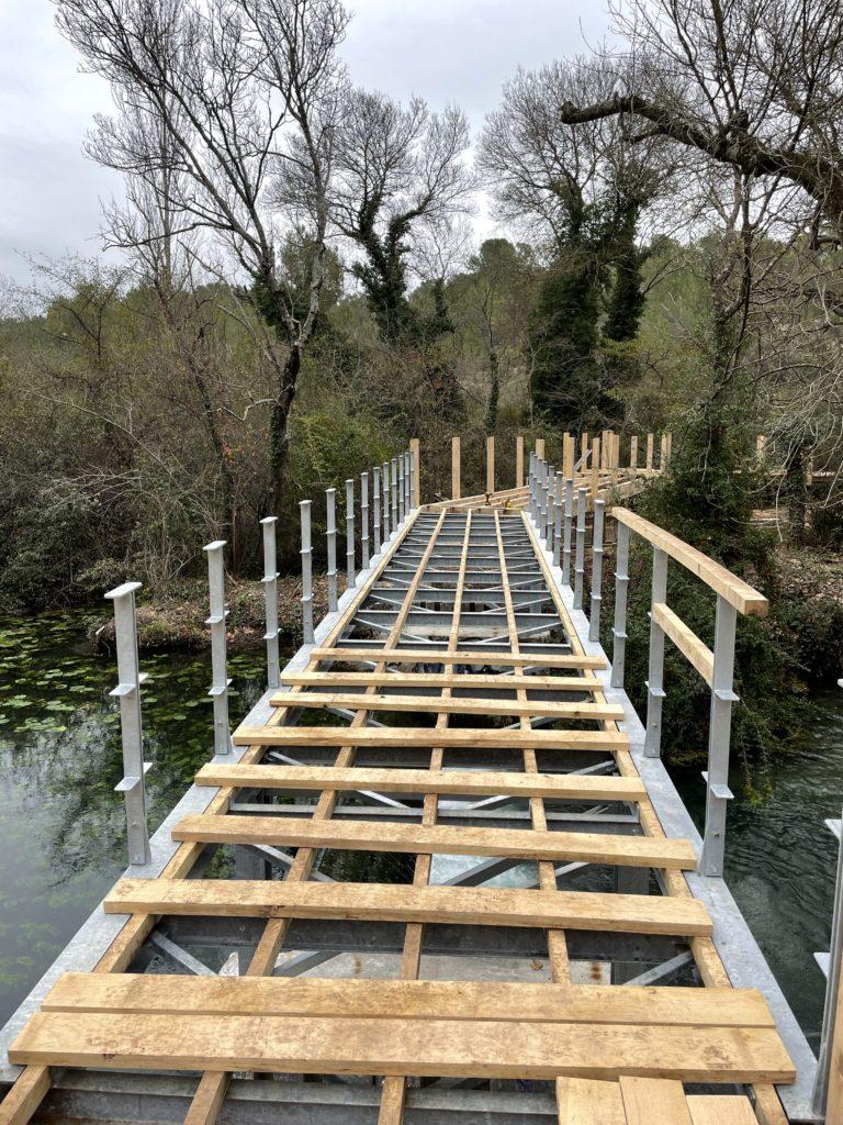 Platelage bois et passerelle ossature métallique – Prades-le-Lez et Saint Clément de Rivière (34) Pontons passerelles & observatoires 2022 – Aménagement de la zone du Gué du Lez : réalisation de platelage bois et passerelle ossature métallique